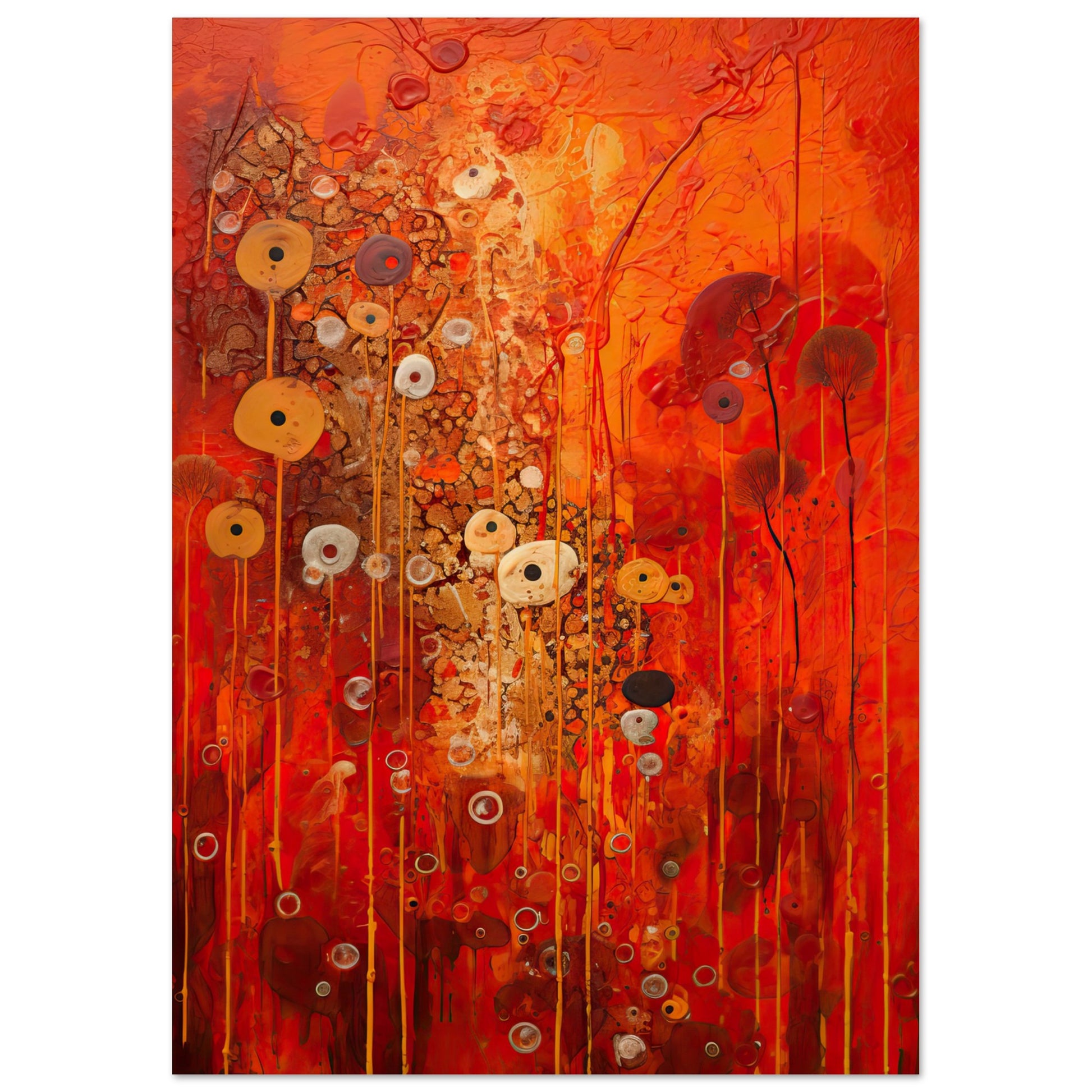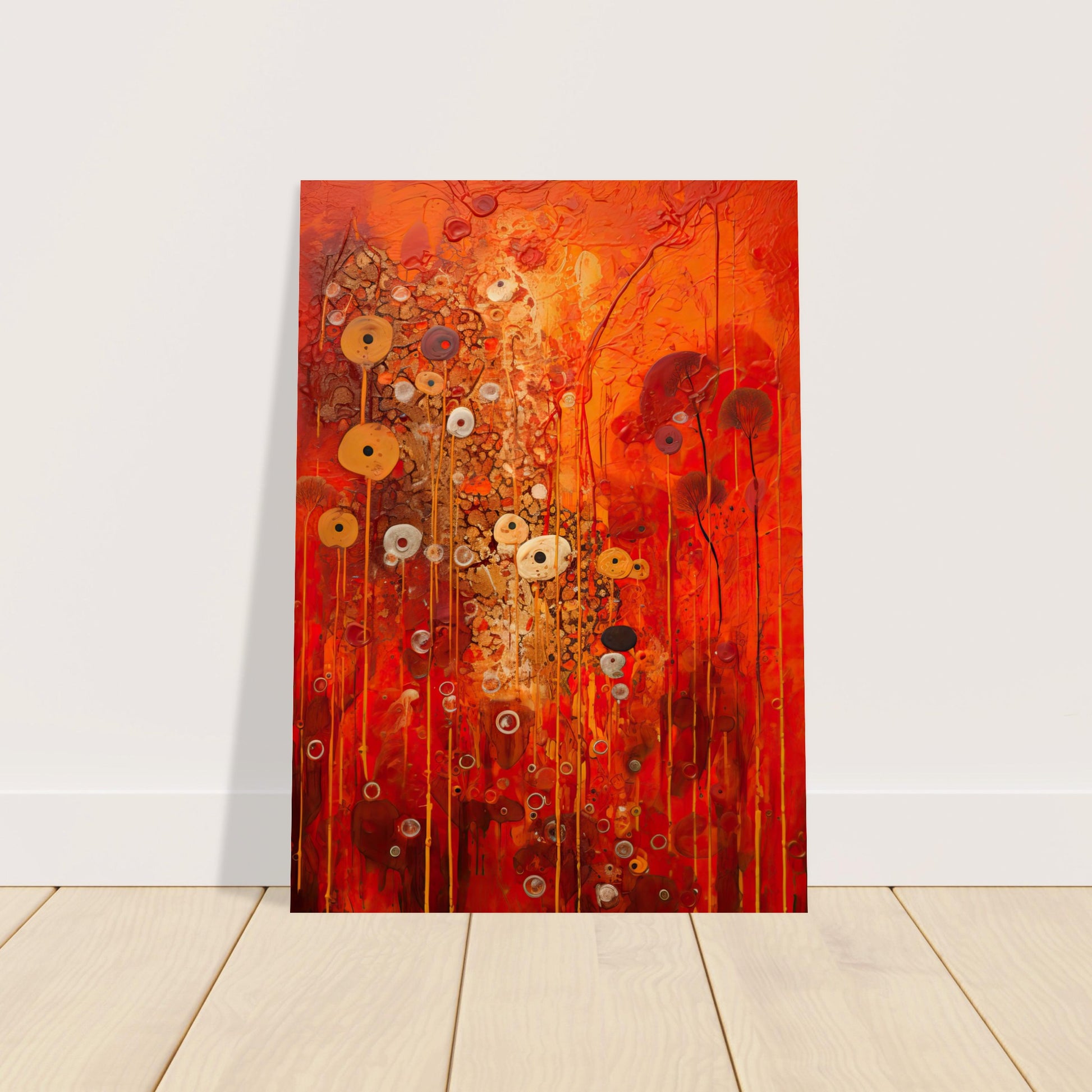 Succumb to the opulent artistry of our printed artwork, a stunning addition to a collection of three spectacular pieces. This vivid red abstract still life, adorned with rich golden accents, creates an incredible, fiery composition. Elevate your space with this stunning work that ignites the senses and leaves a lasting impression. Buy one or acquire the entire collection.