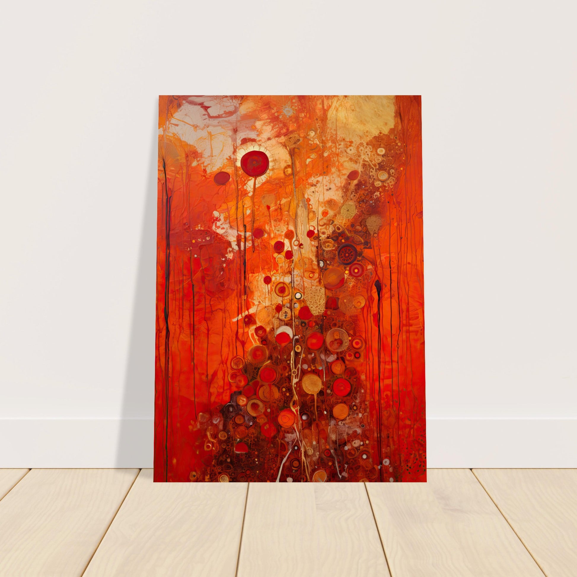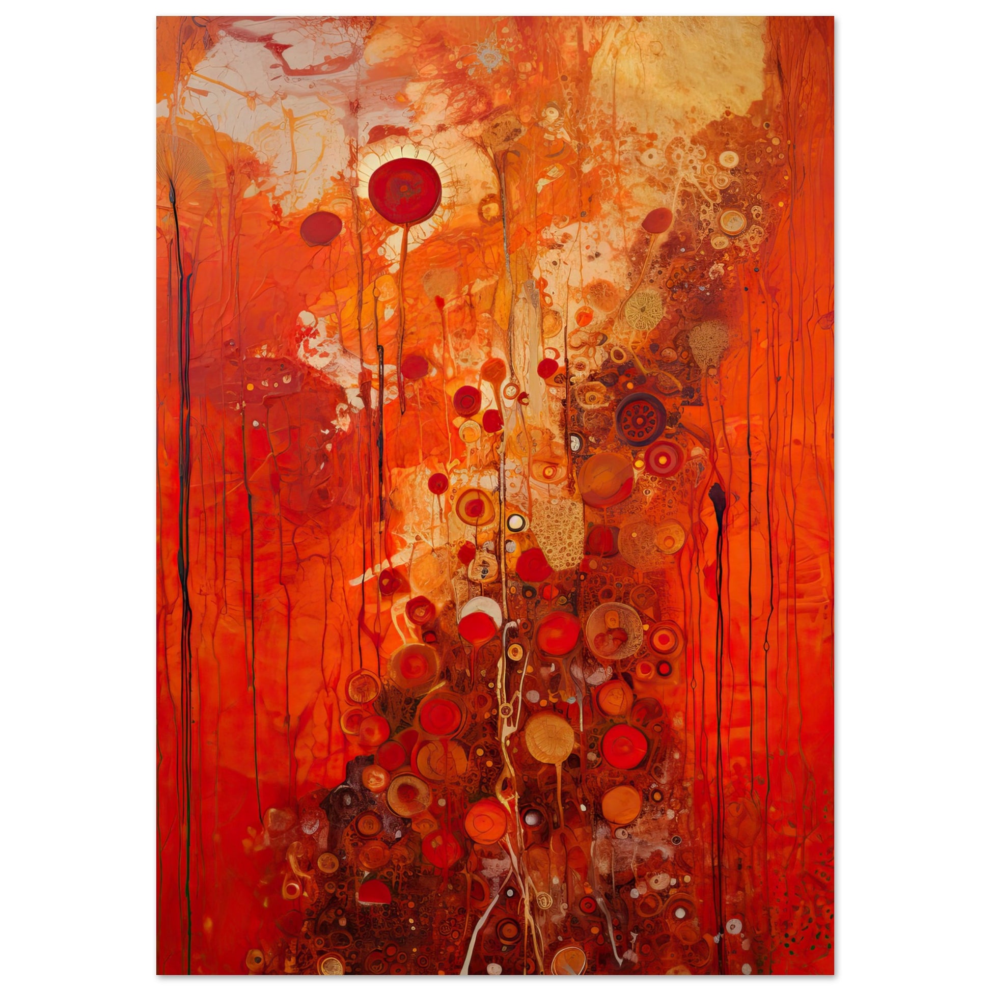 Succumb to the opulent artistry of our printed artwork, a stunning addition to a collection of three spectacular pieces. This vivid red abstract still life, adorned with rich golden accents, creates an incredible, fiery composition. Elevate your space with this stunning work that ignites the senses and leaves a lasting impression. Buy one or acquire the entire collection.